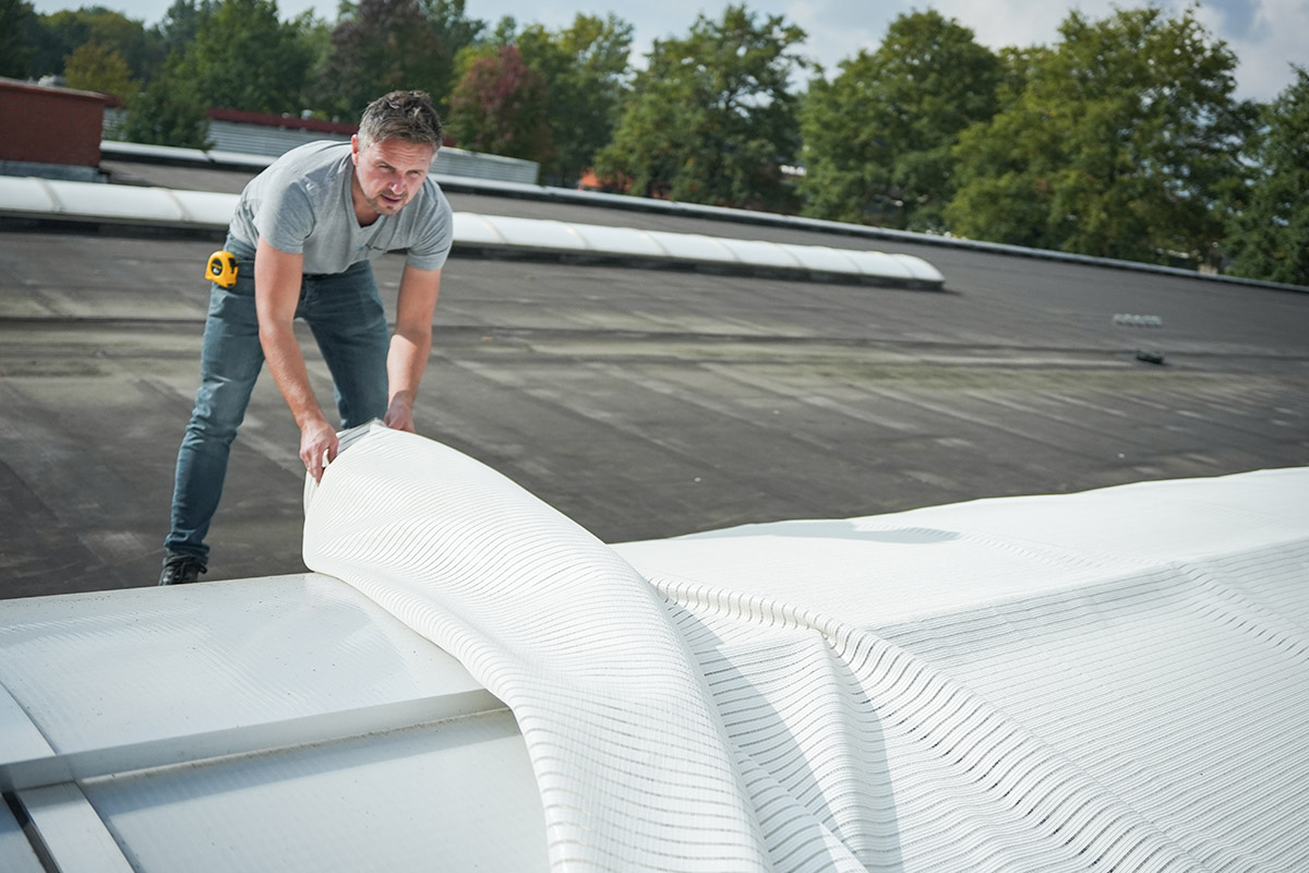 We plaatsen het Heatshield schermdoek op uw lichtstraat. Nu heeft u geen last meer van warmte in uw pand!